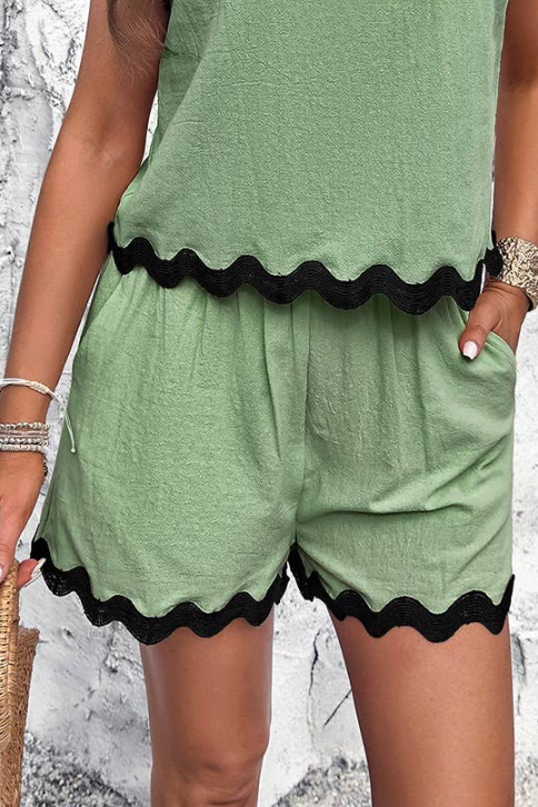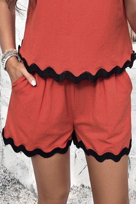 Elevate your Summer style with chic shorts, featuring bold, classic bric-a-brac detailing along the hem for a timeless twist. This look is perfect for sunny days, weekend getaways, or a stylish vacation vibe. Coordinate the shorts with the matching top for an effortless, pulled-together look, or mix and match with your wardrobe staples to create endless Summer looks. Classic. Versatile. Always in style. And they have pockets! 100% Textured Cotton. Available in 3 colors S-XL.