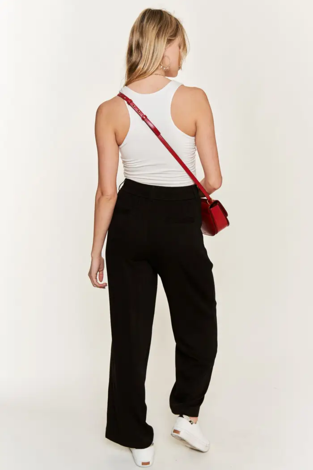 These great straight leg wide pants have an urban vibe to them...relaxed but adaptable for dressier or work days. Belt loops, front and back pockets, slight front pleating and back elastic band for comfort and a relaxed, stylish fit.